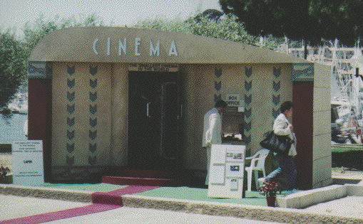 How's this for a way to promote short films? Disguise a van as an Art Deco movie theatre, create an ornate interior, and show 'features' no longer than 20 minutes. This English group set up in among the festival pavilions, where they got regular press coverage. Their plan was to travel through France on the way back, stopping in numerous small towns. |