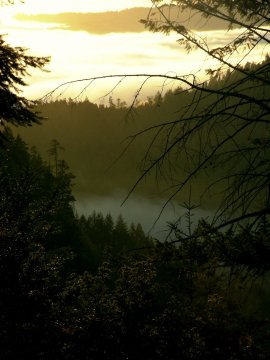I briefly considered staying there, but ended up driving on. As it got later, the fog got more picturesque: