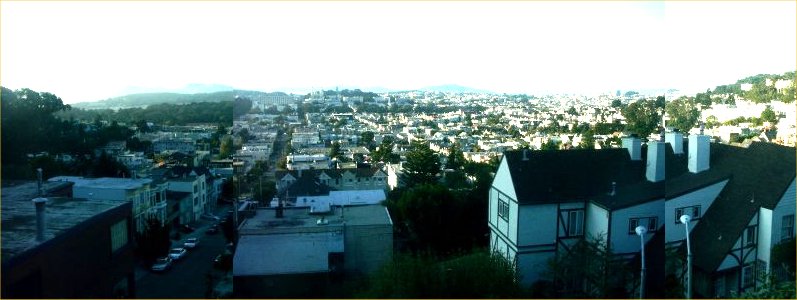 Having made a disastrous detour to Napa (see above), I barely had time to turn around and get to Palo Alto at 5:30, where I was to meet my French nephew (almost my contemporary) and see his little twins (barely born when last we met).A very nice family interlude, the twins being suitably adorable (and trilingual: English, French and their mother’s Chinese.) My nephew and I talked of family and other matters. Checking my e-mail, I discovered I was invited to a dinner party in San Francisco the next night, at a house with a spectacular view of the bay. So, having spent the night, I took a slow casual drive up the Camino Real and found myself back in San Francisco.