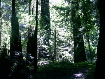 Really, the most wonderful aspect of the redwood forest is not their size, but the cathedral-like play of light through the high graceful columns of their trunks. This is so pronounced that most visitors speak, unprompted, in low whispers. walking in the redwood groves is, in a way, more like walking through Notre Dame than visiting spectacular monuments of size.
