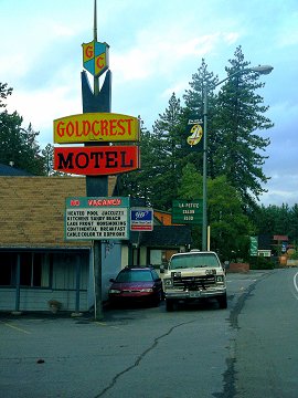 Having checked a few places, I ended up getting a motel just as the fog I’d found so pretty exploded nto rain. The owner told me about a good restaurant in what looked like a log cabin, right near the Biltmore Casino (where I could have gotten a free breakfast the next morning, were I a hash-brown fan.) The Soule Domain was indeed excellent and very agreeable. Exactly the splurge I’d intended to allow myself (along with Jambalaya) on a largely budget trip.